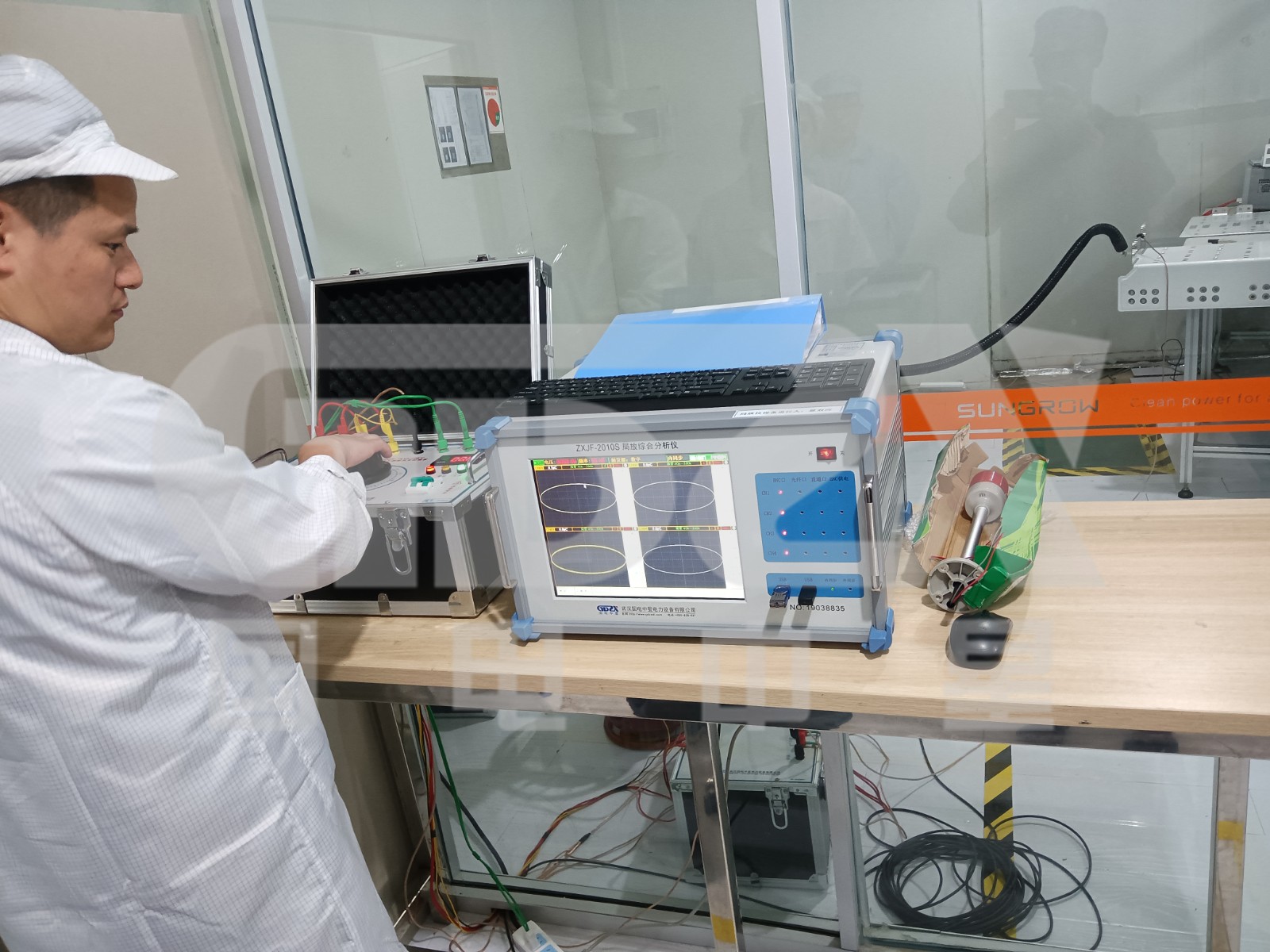 ?6月29號,國電中星收到合肥客戶發(fā)出的售后邀請,我司立即派出專業(yè)的技術(shù)人員趕往現(xiàn)場。此次試驗用到的設(shè)備是ZXJF-2010S局放綜合分析儀。